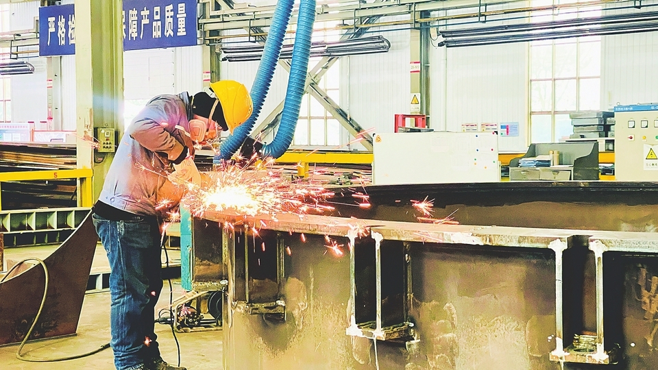 “用户等着设备投产,我们必须争分夺秒。”现场负责人介绍道。在庞大的设备面前,焊接工人们手持焊枪,全神贯注地进行着“钢铁绣花”。焊缝的平整度误差被严格控制在0.5毫米以内,每一道均匀光亮的“鱼鳞纹”,不仅关乎设备的密封性与安全性,更是潞安化机人对卓越品质的极致追求。