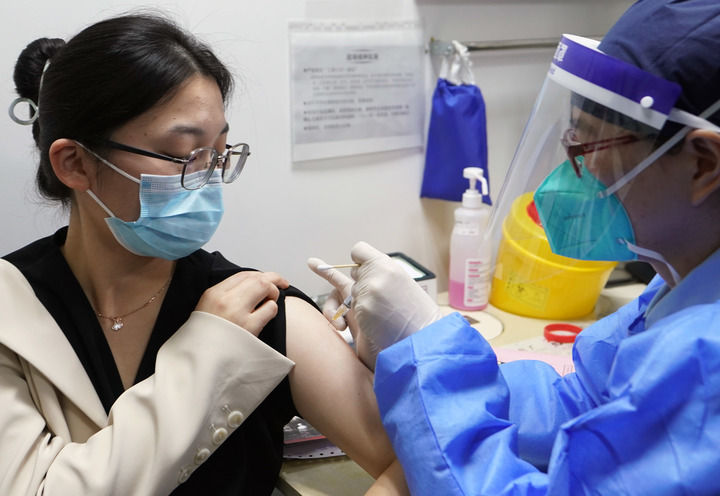 一名女士在复旦大学附属妇产科医院接种九价HPV疫苗(2022年11月11日摄)。新华社记者刘颖摄