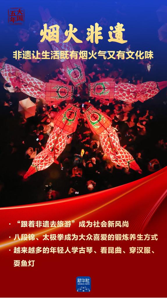 文脉连着国脉,匠心续写华章。“手艺养活一家人,非遗振兴一个村”成为时代佳话;“非遗+旅游”“非遗+时尚”蔚然成风,烟火气中满含文化味……当非遗从历史走进烟火日常,当创新赓续华夏文脉,中华民族伟大复兴就有了深沉而持久的文化动能。