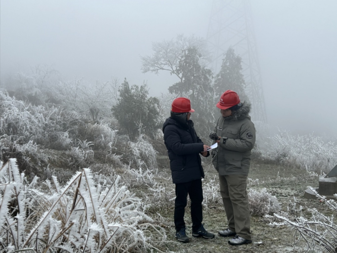 南方电网超高压公司贵阳局黎平分局线路运检员杨肄和杨书明在寒潮来临前,就进驻了在半山上的抗冰小屋值守,已经坚守4天3夜。