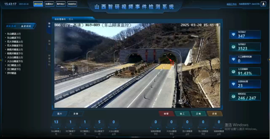 异常事件主动辨识已在824座隧道进行了落地应用,覆盖数转通道内的所有隧道。异常事件辨识时间缩短至10秒以内,有效应对了山西隧道点多线长面广、车流量大的复杂监控难题,改变了传统的工作模式,减轻了一线监控人员的工作负担。