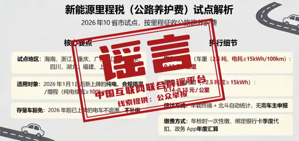 辟 谣 多地辟谣新能源汽车试点开征“里程税”